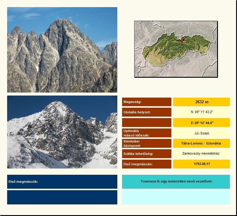 A Magas Tátrának kétségtelenül a legismertebb és legnépszerűbb orma a Lomnici csúcs. Büszkén tekint le hármasszegletű piramisa a szepesi felföldre. Innen nézve szinte uralkodó helyzetet foglal el az összes csúcsok között, Nem is csoda, hogy igen hosszú ideig a Tátra legmagasabb kiemelkedésének tartották s csak a XIX. század közepe felé nyert végleges megállapítást, hogy az elsőség e tekintetben a Gerlahfalvi csúcsot illeti.